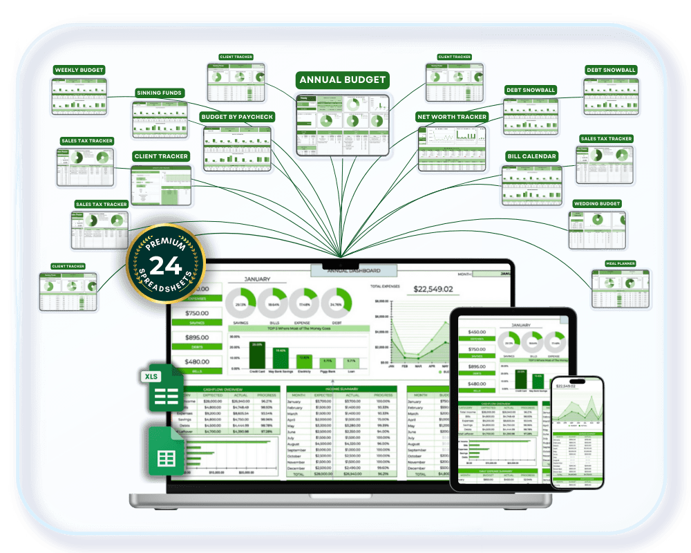 This bundle includes 24 expertly designed spreadsheets to handle every aspect of your finances—whether personal or business-related.